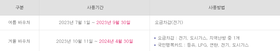 * 여름 바우처 잔액은 겨울 바우처로 사용할 수 있음