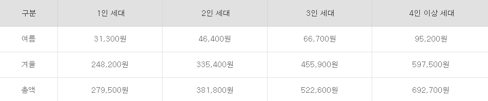 동절기 난방비 지원: 연2회 (1월,2월)지급- 1회 지급액: 10만원(세대)