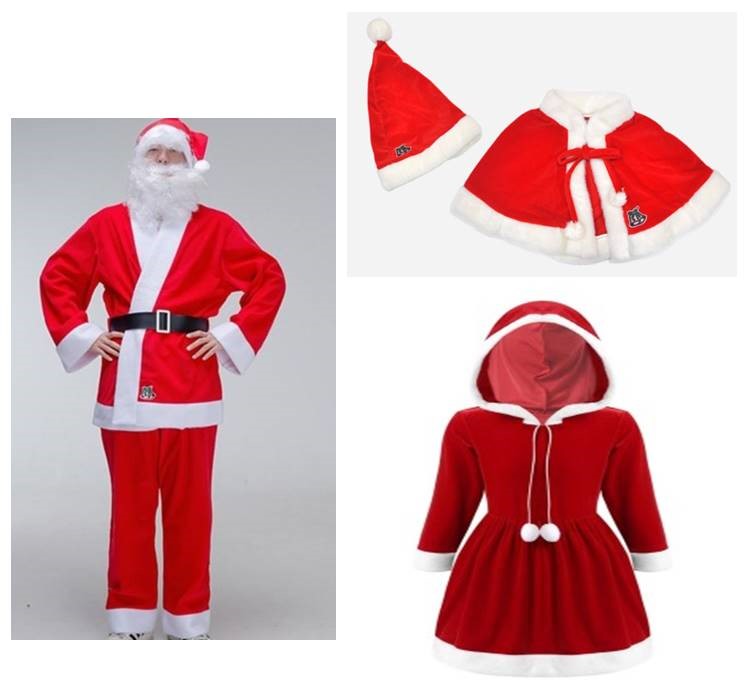 성탄절이 되면 착한 아이들에게 선물을 준다는 인물인 산타클로스가 입은 옷으로 크리스마스 시즌에 산타 코스프레를 하고 파티를 즐기기 위한 소품입니다.