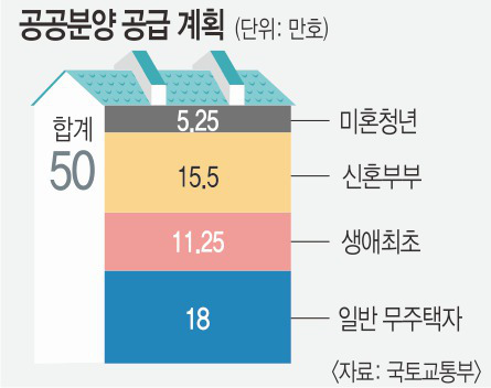 정부는 향후 5년 동안 공급할 예정인 공공분양 주택 50만 가구 가운데 34만 가구를 청년층에게 할당한다. 청약당첨 기회가 낮았던 미혼 청년을 위한 추첨제도 신설된다. 그리고 나머지 16만 가구는 4050등 중장년층에 공급한다. 서울에 6만 호 공급예정, 수도권에 총 36만 호, 비수도권은 총 14만 호 공급할 계획이다. 3배 이상 늘어난 공공분양 주택 공급, 획기적인 내 집 마련 자금 지원 등을 통해 청년과 서민 등의 내집 마련 기회가 확대될 전망이다.