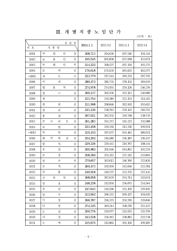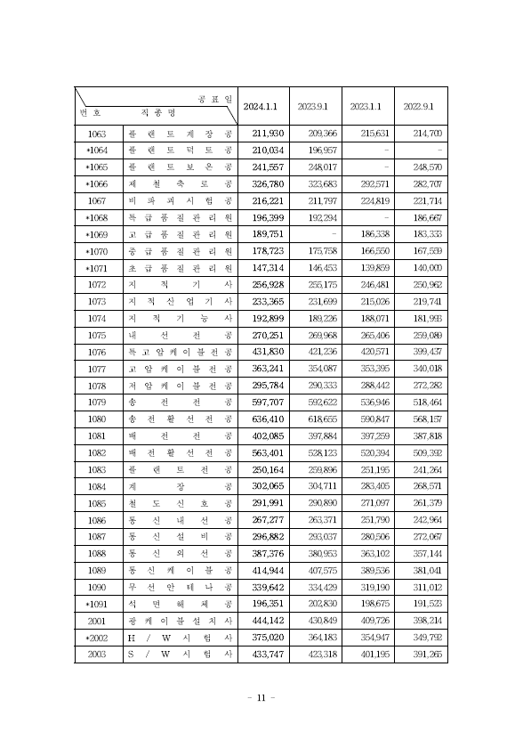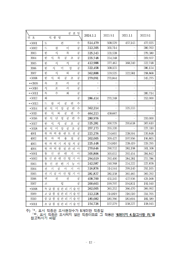 2024년 상반기 적용 - 건설업 임금실태 조사보고서 (시중노임단가) 참고