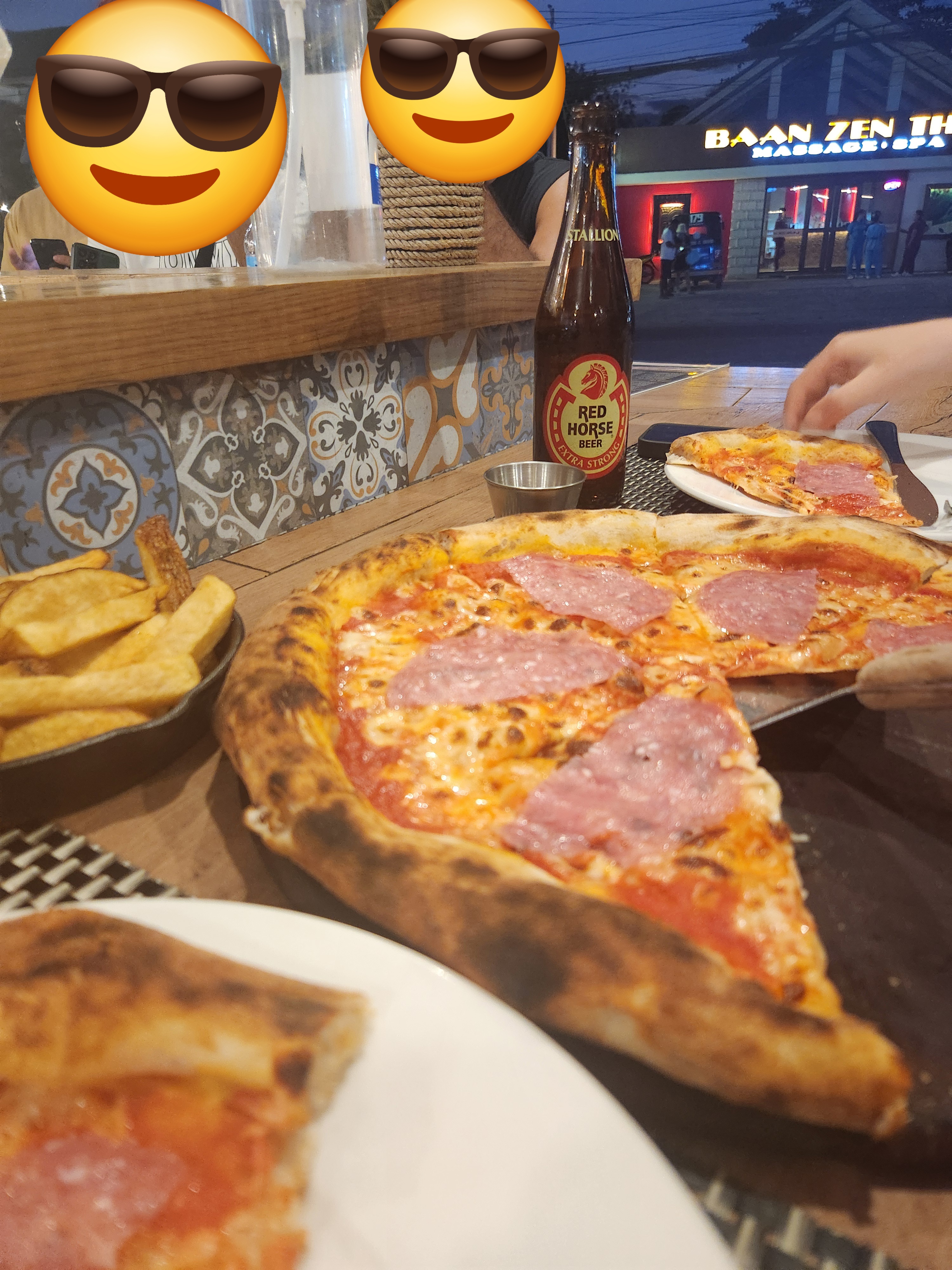 화덕피자 맛집이에요. 사실 보홀에서는 해변 근처 바에서 먹는 피자들도 다 맛있었어요. 그래도 큰 화덕 덕분인지 갓 구운 화덕피자의 맛을 느낄 수 있는 곳입니다. 길가에 오픈되어 있는 식당이라 조금은 시끄럽고 북적였지만 피자 만드는 과정을 가까이에서 즐길 수 있어 좋았습니다. 얇고 쫀득한 이태리식 피자 도우에 수제로 직접 만든 베이컨도 인상적이었습니다. 보홀에서 맛있는 이태리식 피자와 맥주한잔 원하신다면 강력 추천드립니다.