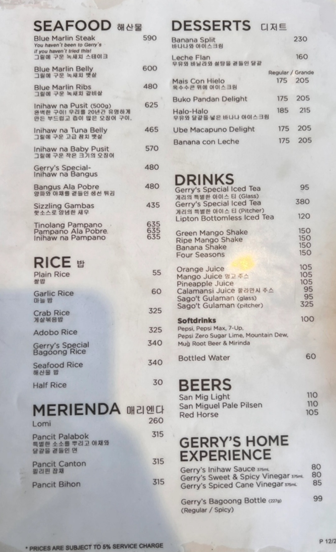 게리스 그릴은 현지인들이 많이 찾는 로컬 식당으로 오징어 구이로 이미 유명하더라구요