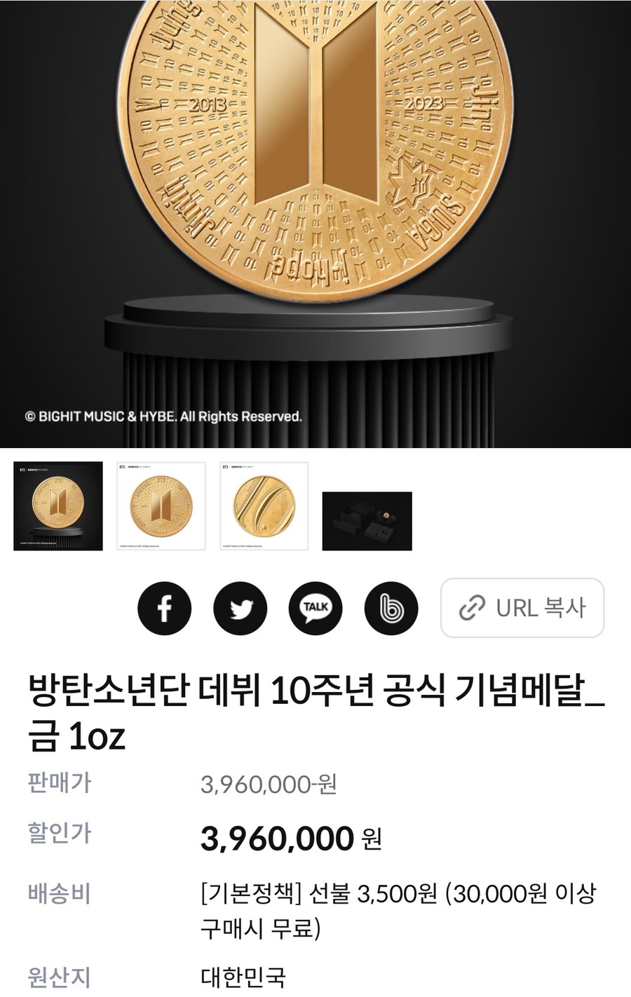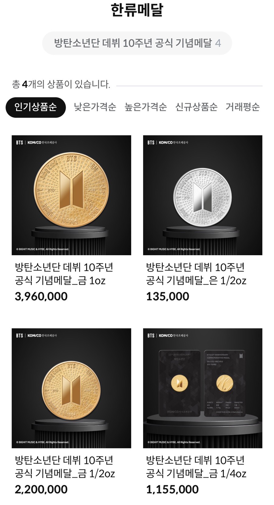 BTS기념메달 출시